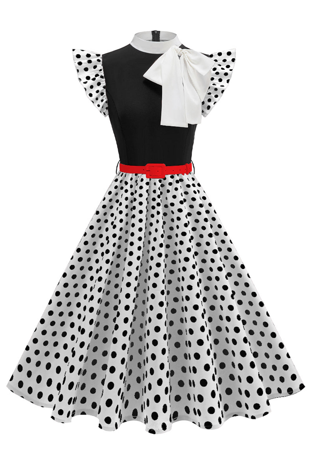 Hoge hals met polkadots Zwart Een lijn Jurk uit de jaren 50 met strik