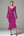 Fuchsia en magenta satijnen V-hals A-lijn lange formele jurk met mouwen