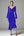 Blauwe bloemen gegolfde schede bedrukte bruiloft gast jurk