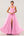 Roze bloemen gegolfde schede lange bruiloft gast jurk met spleet