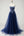 Marineblauwe strapless A-lijn doorschijnende korset-appliqué tule lange galajurk met pailletten