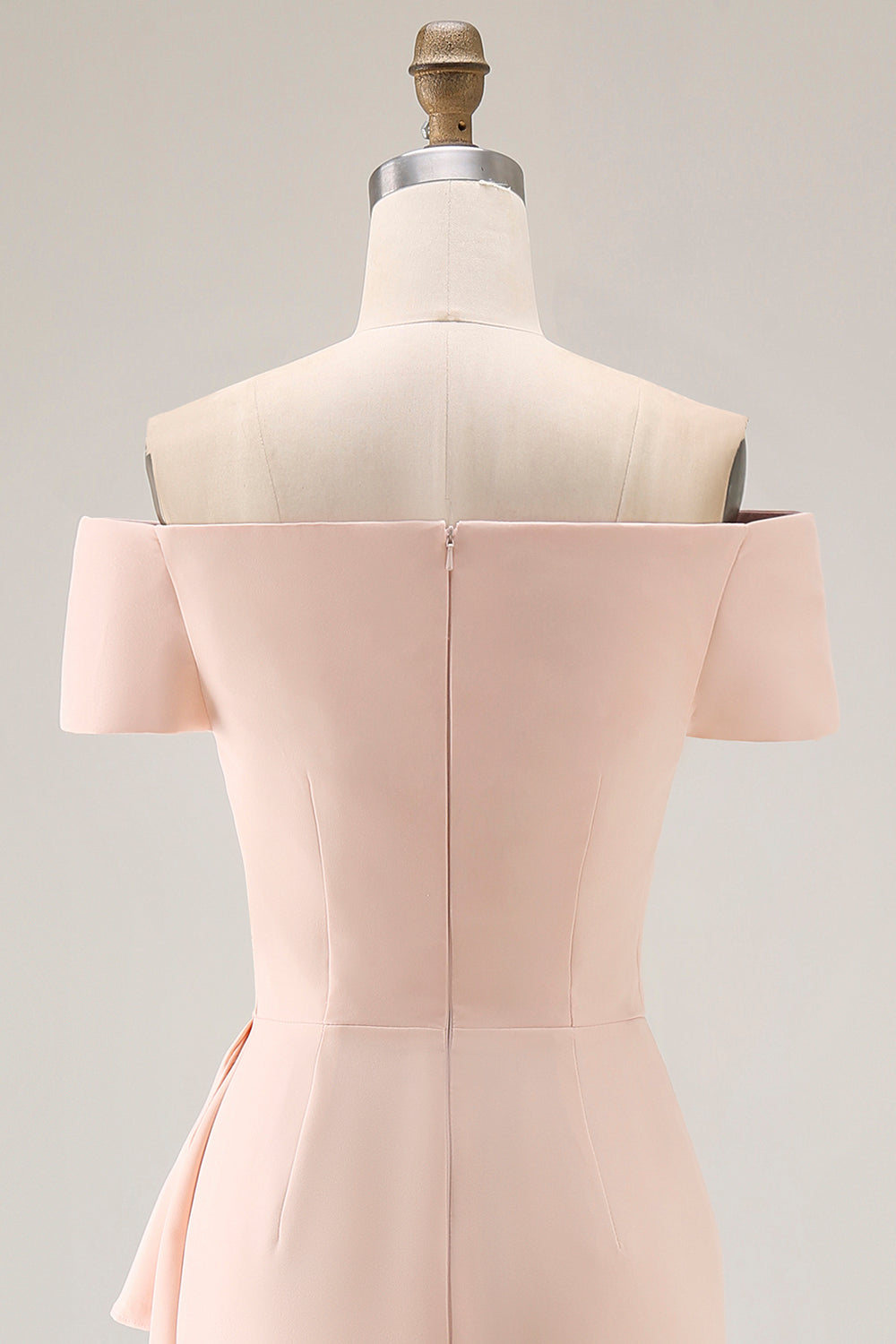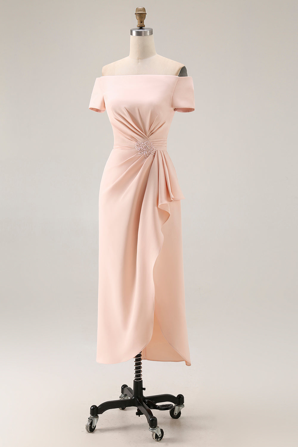 Abrikoos Uit De Schouder Gerimpelde Schede Moeder Van De Bruid Jurk Met Ruchespleet