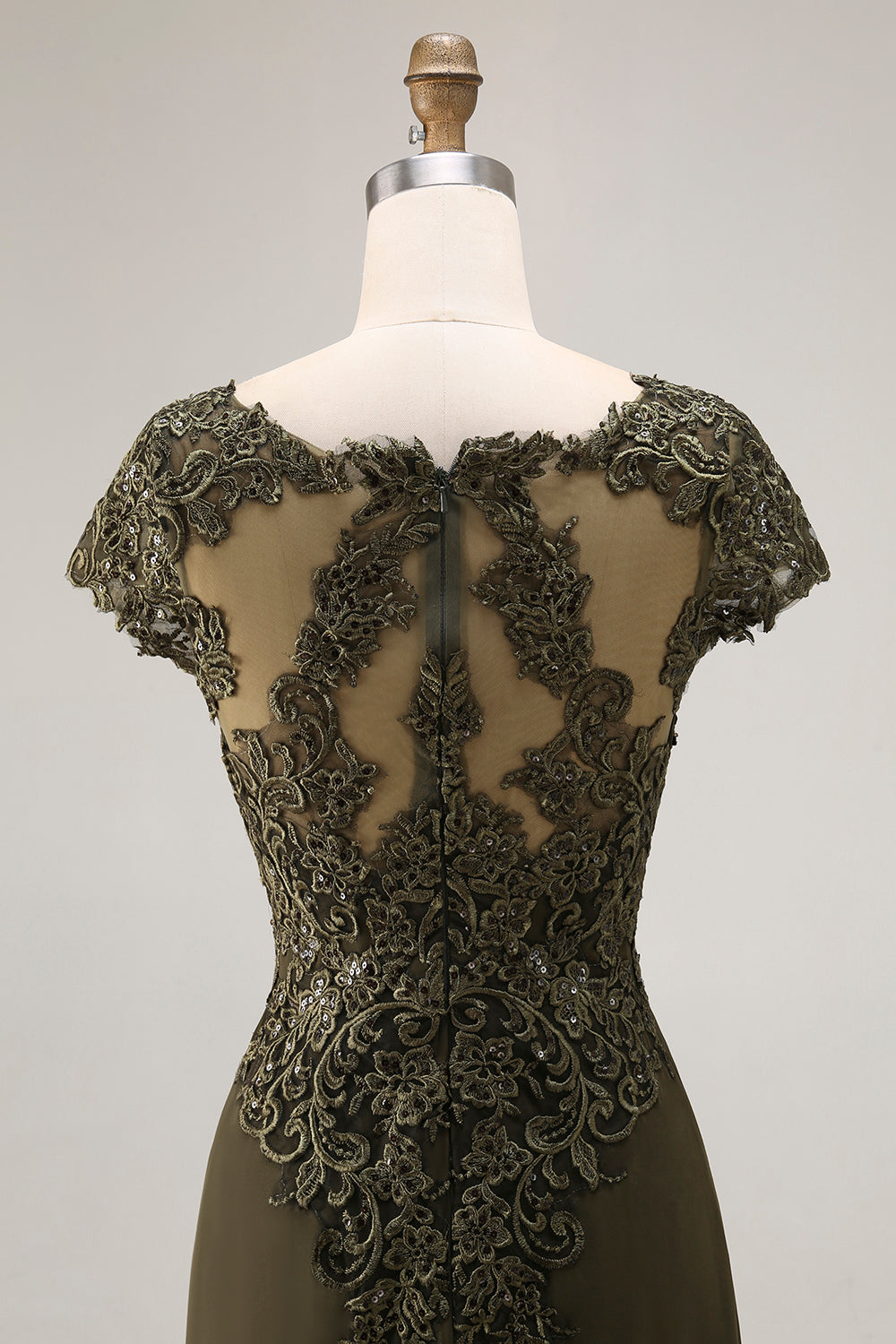 Olijf A Line Satijn Asymmetrisch Hoog Laag Moeder van de Bruid Jurk