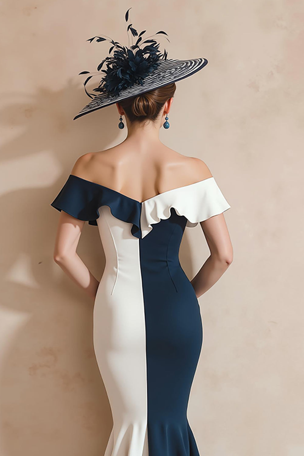 Zwart-witte zeemeermin van de schouder gegolfde lange moeder van de bruid jurk