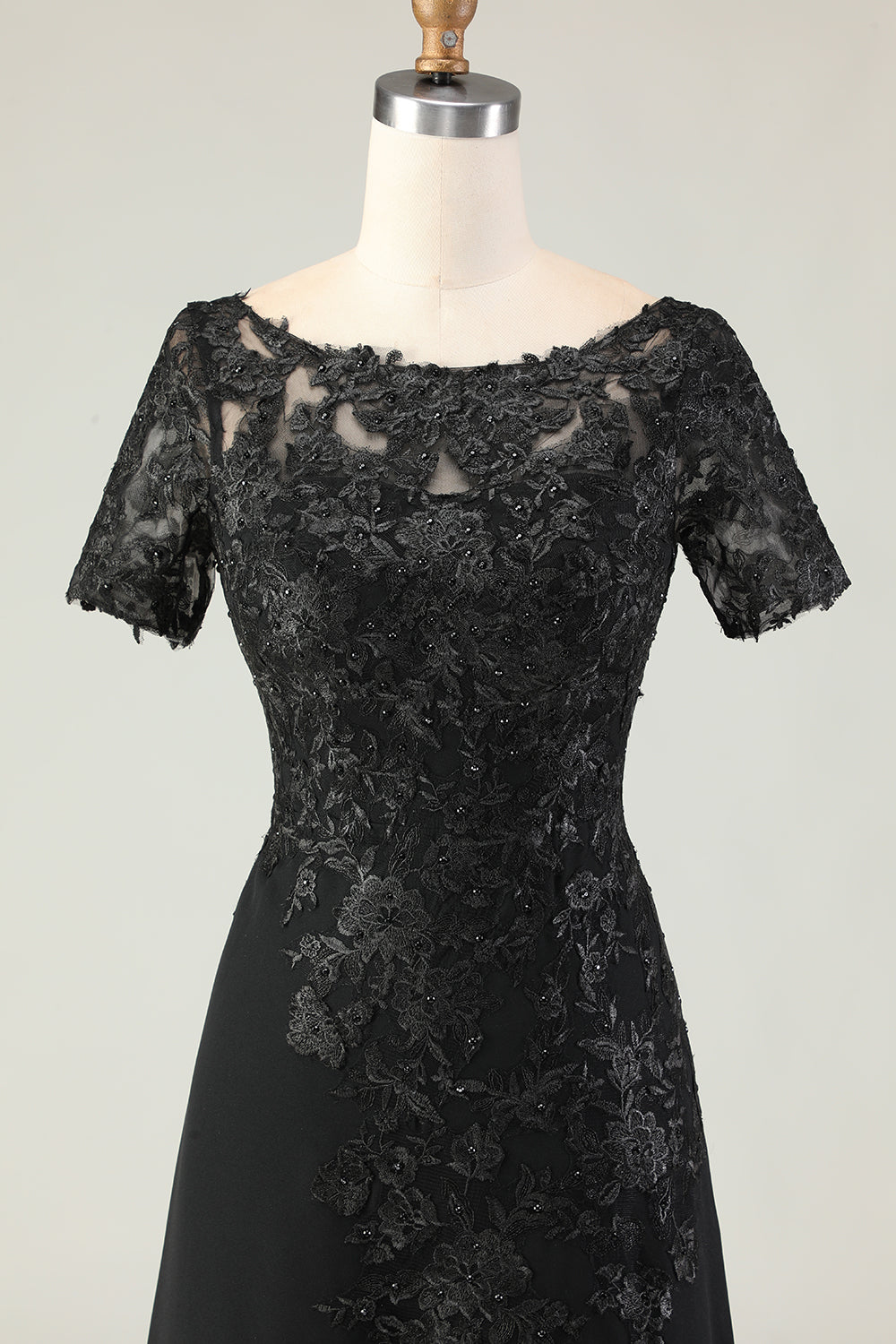 Zwarte schede satijn lange moeder van de bruid jurk met applicaties