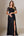 Zwarte satijnen gegolfde lange moeder van de bruid jurk met kant