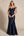Een lijn gerimpeld lang marineblauw moeder van de bruid jurk