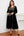 Zwarte ronde hals lange mouwen A-lijn moeder van de bruid jurk