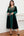 Donkergroene zeemeerminjurk met ronde hals en kralenmouwen