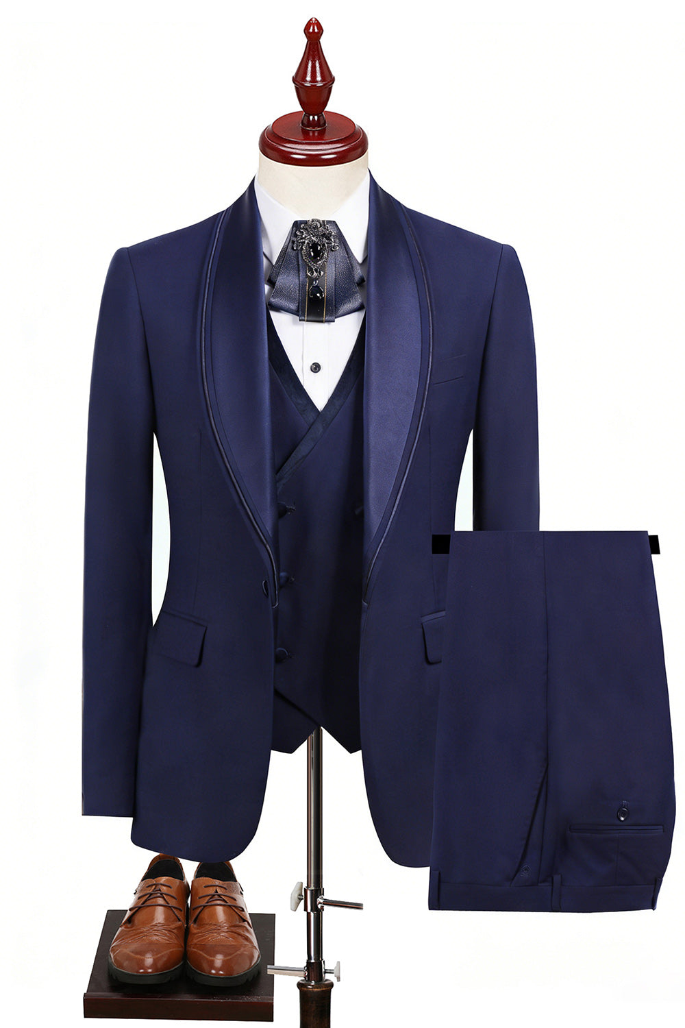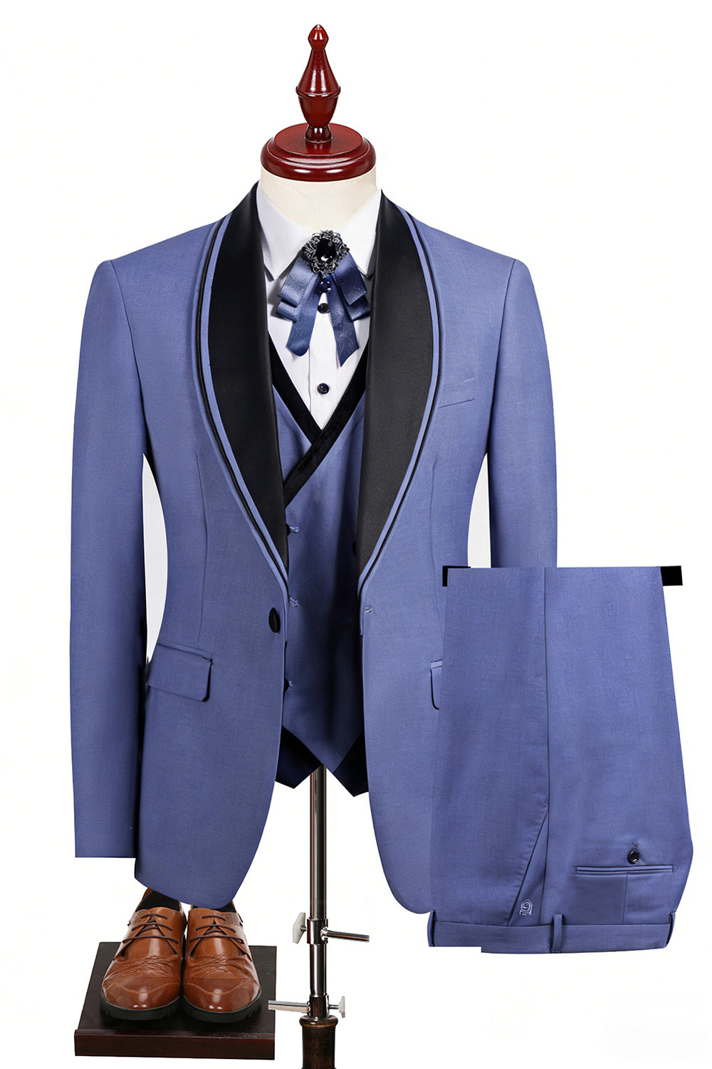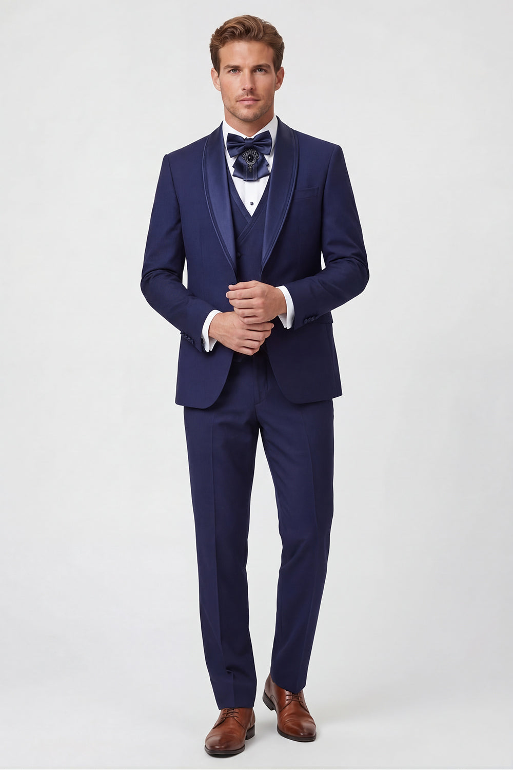 Blauwe 3-delige Sjaal Sjaal Revers Herengalapakken