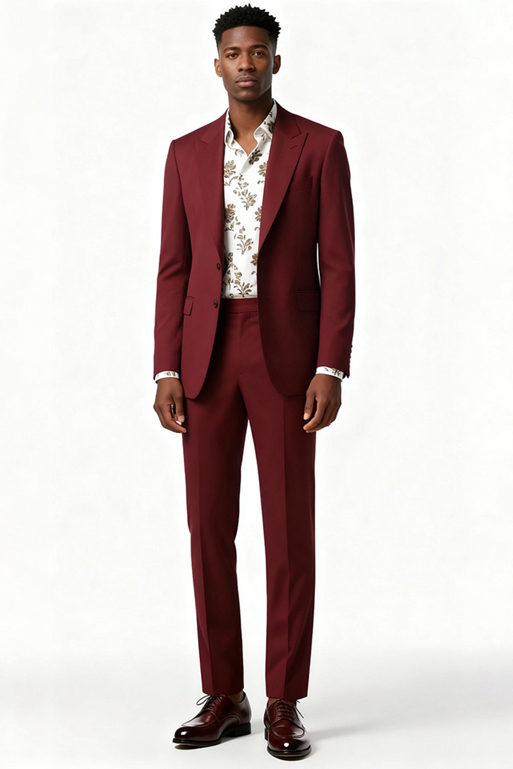 Burgundy Peak Lapel 2-delige Single Breasted herenpakken