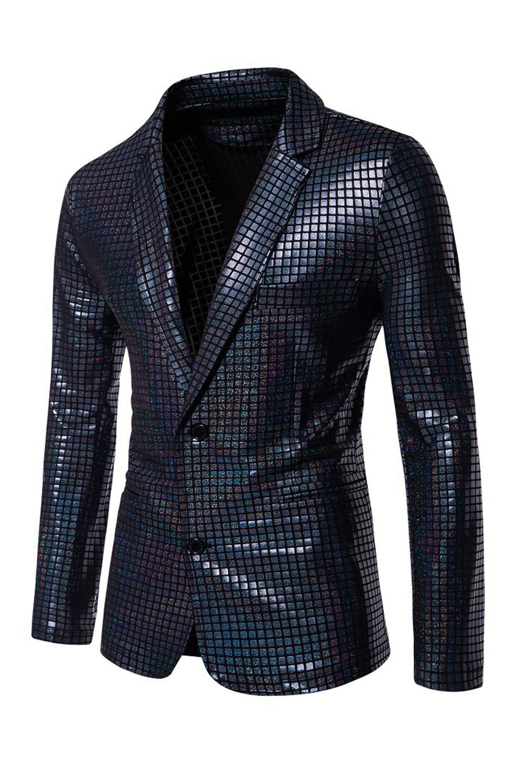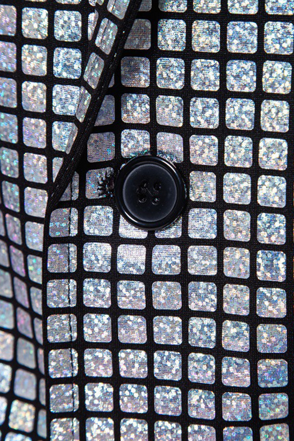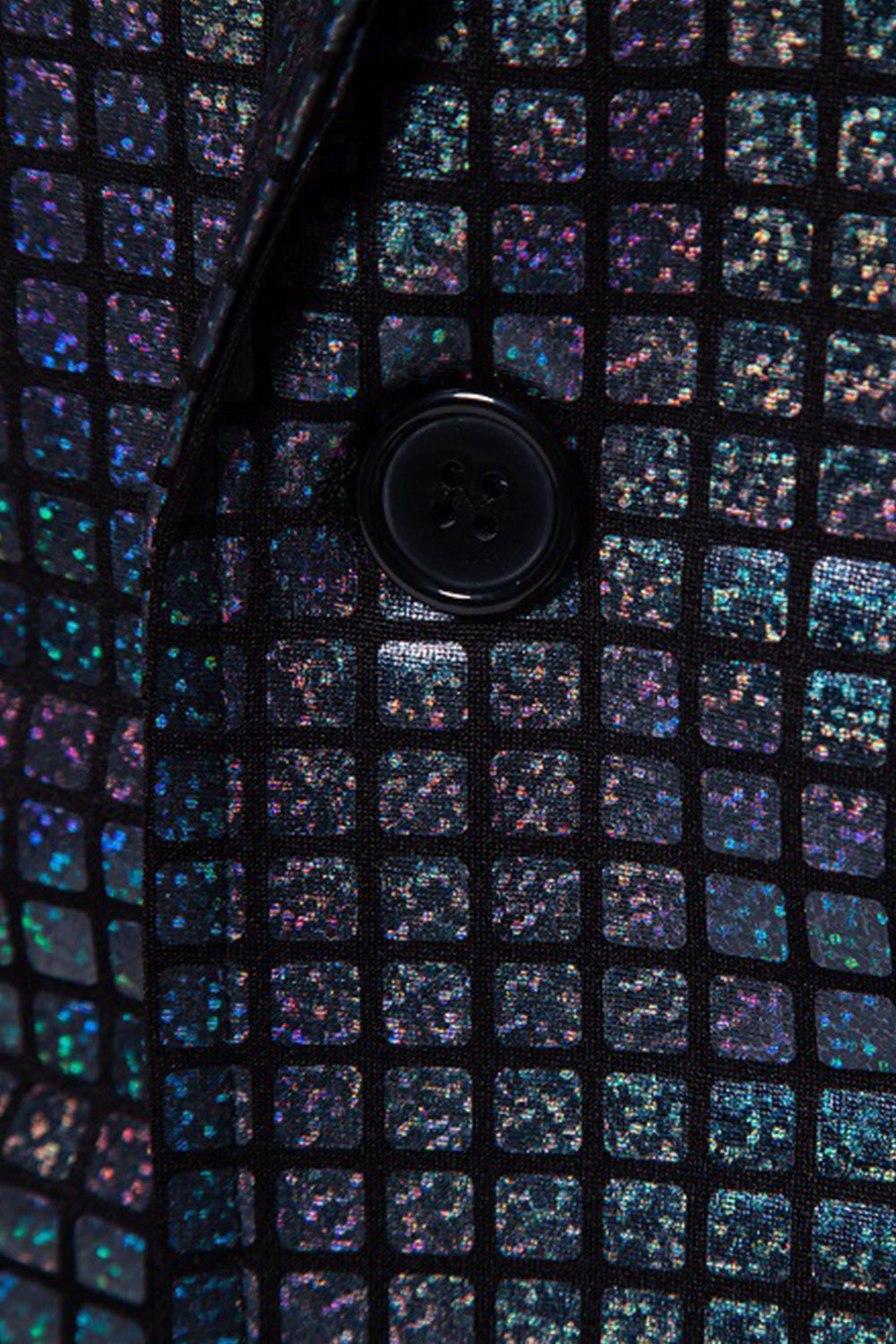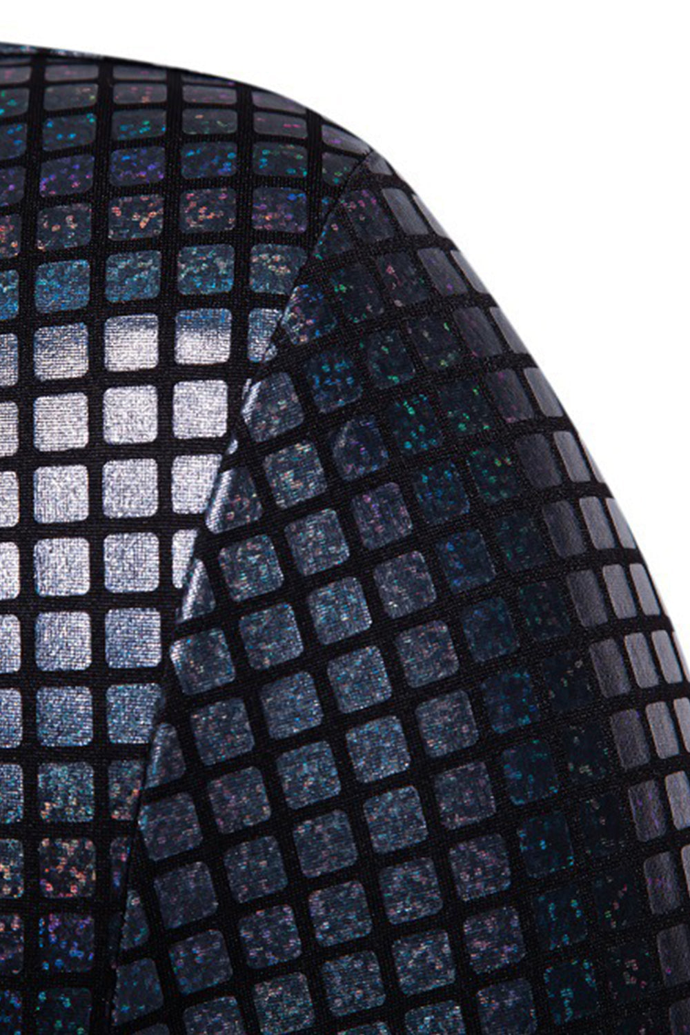 Zwarte metalen raster enkelrijzige tweedelige herenbalpakken met inkepingen