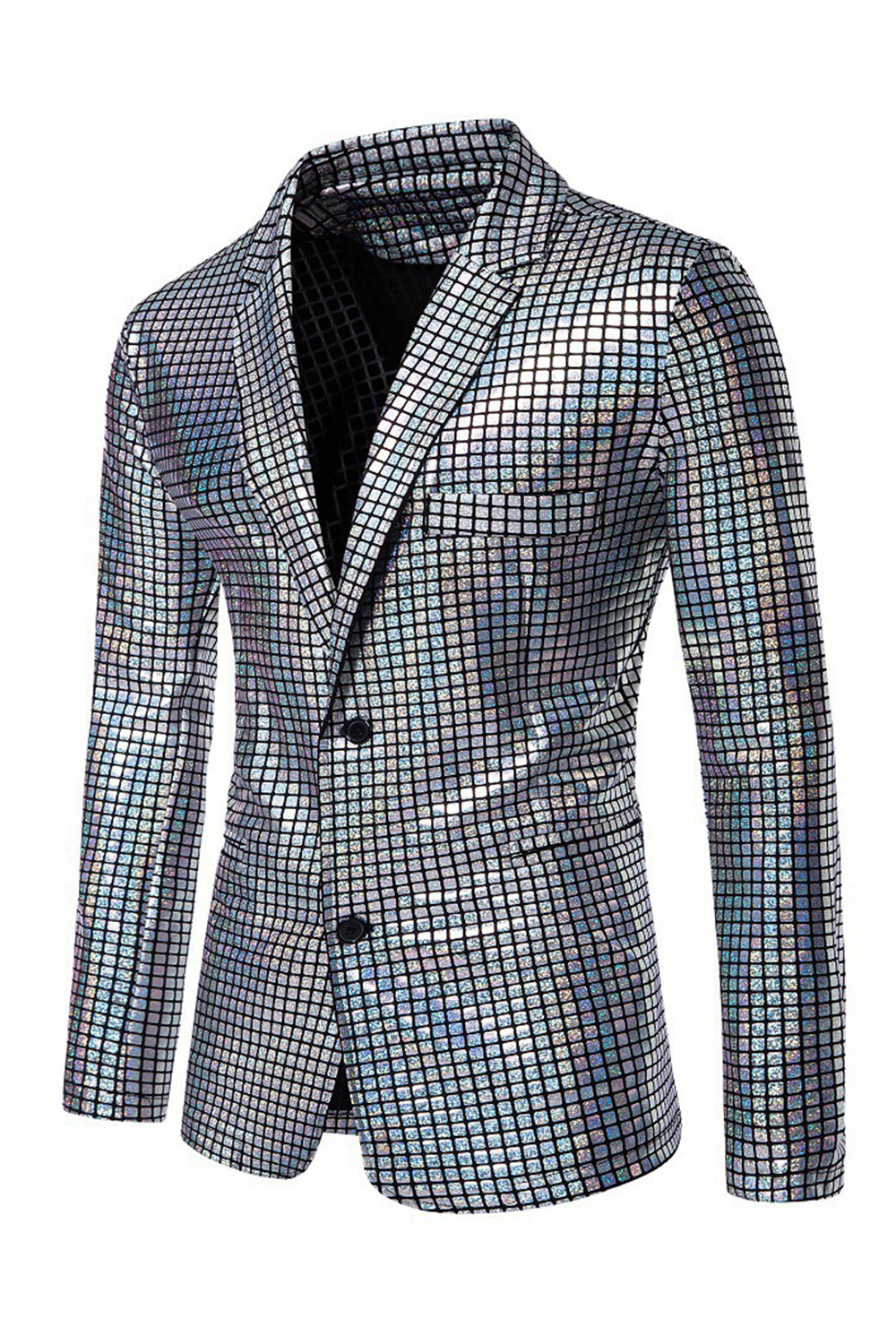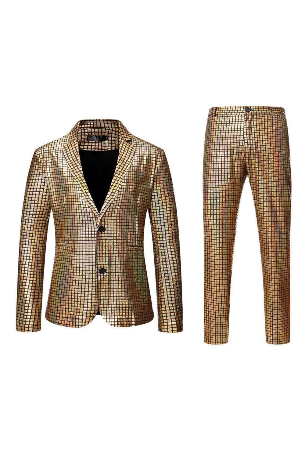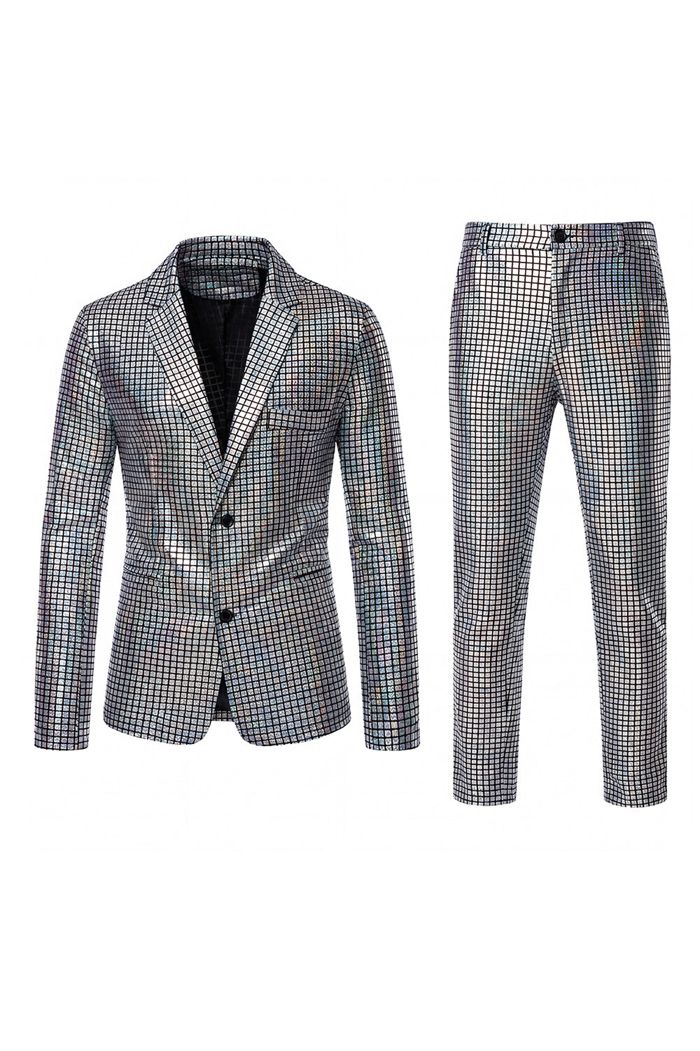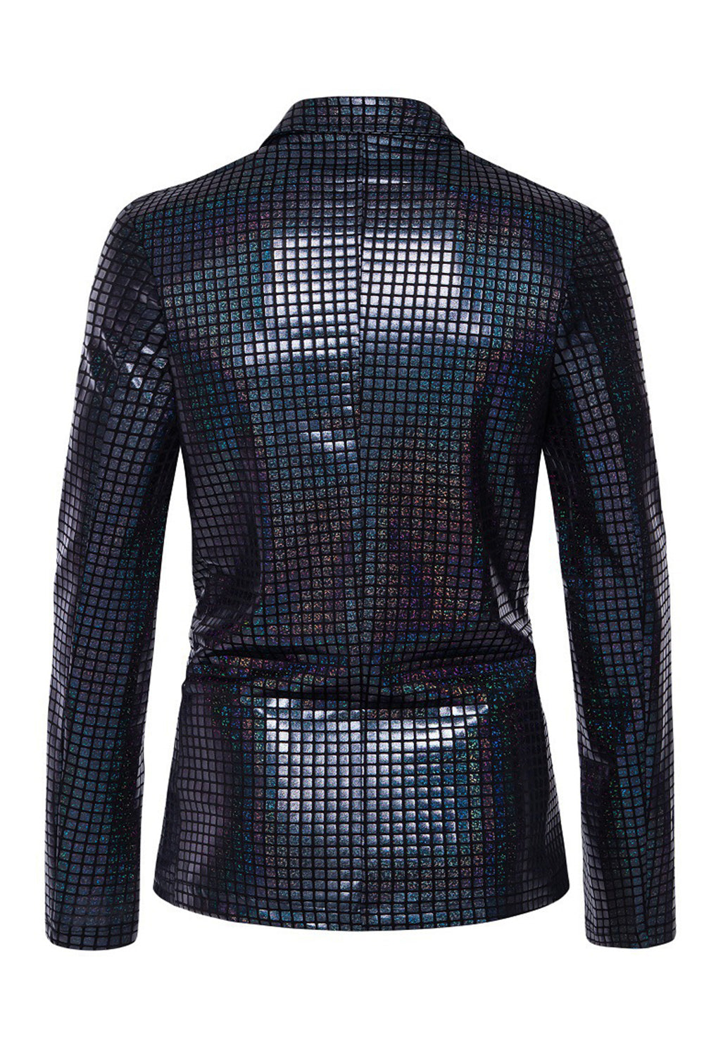 Zwarte metalen raster enkelrijzige tweedelige herenbalpakken met inkepingen