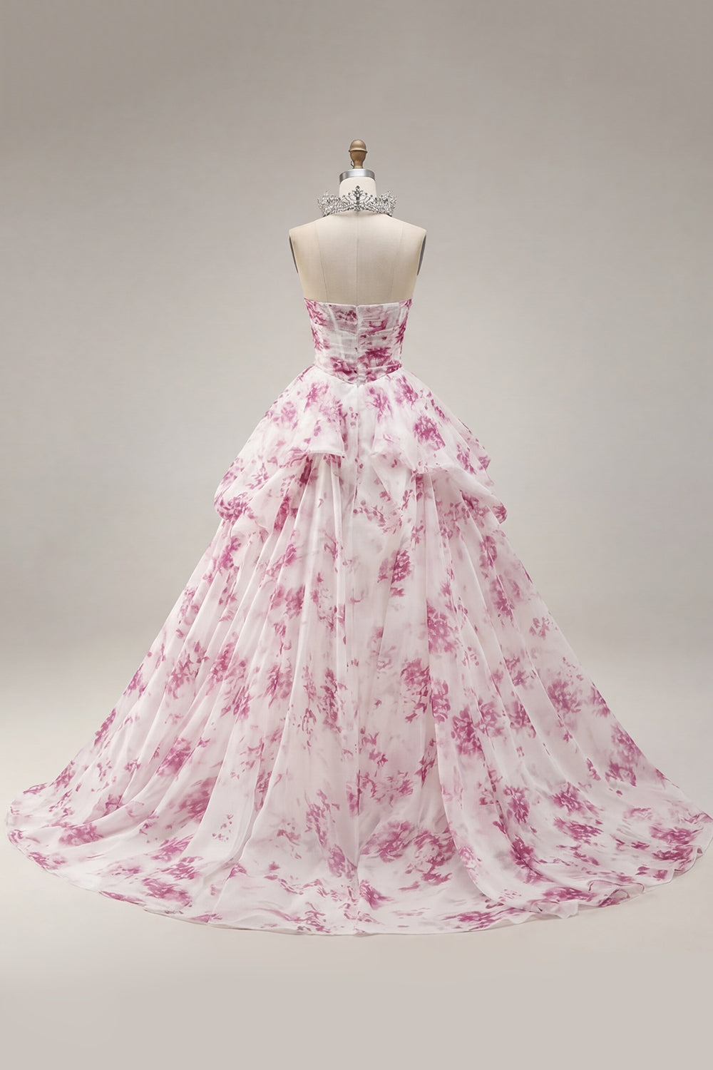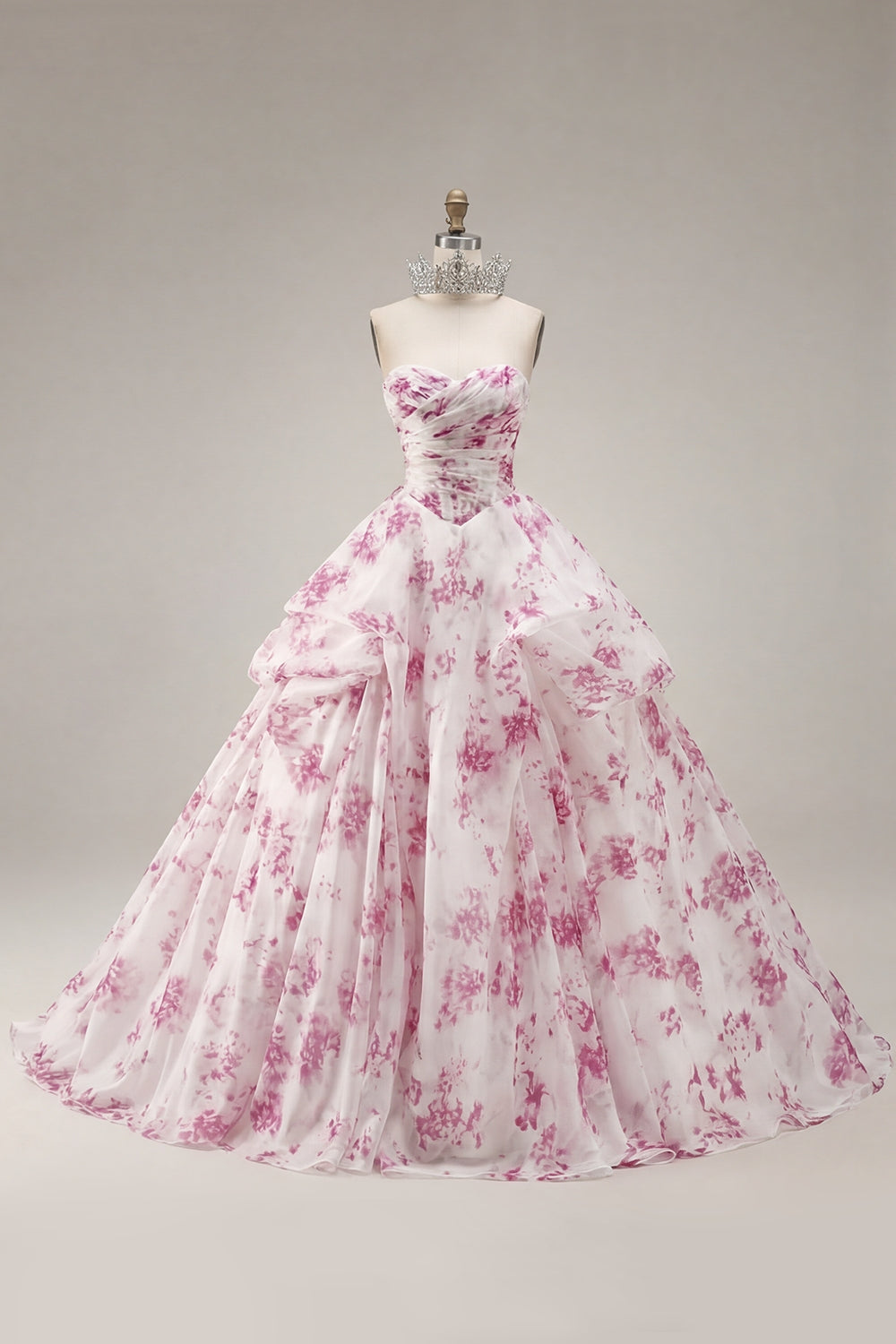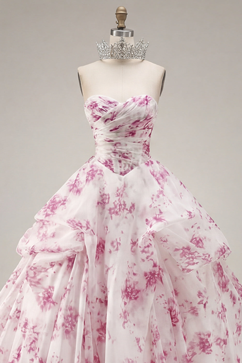 Baljurk strapless witte fuchsia bloemenjurk quinceañera jurk