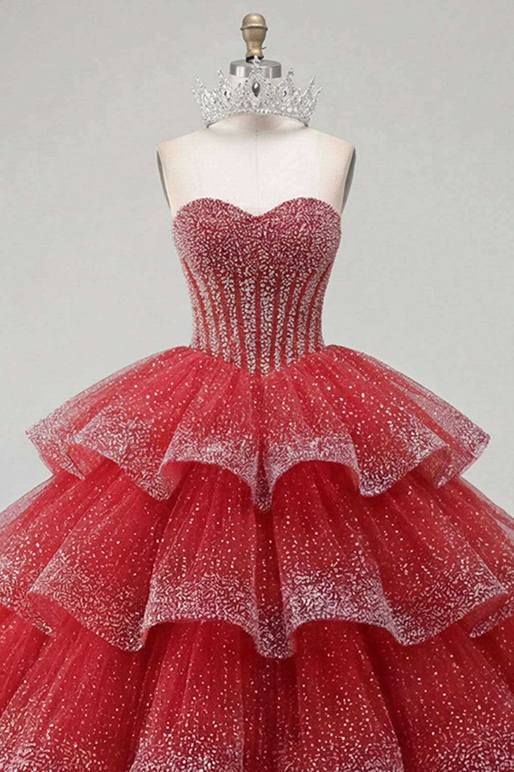 Gelaagde baljurk strapless rood met kralen bezet quinceañera-jurk