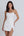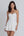 Ivoorkleurige strapless bodycon gerimpelde minijurk met ruches
