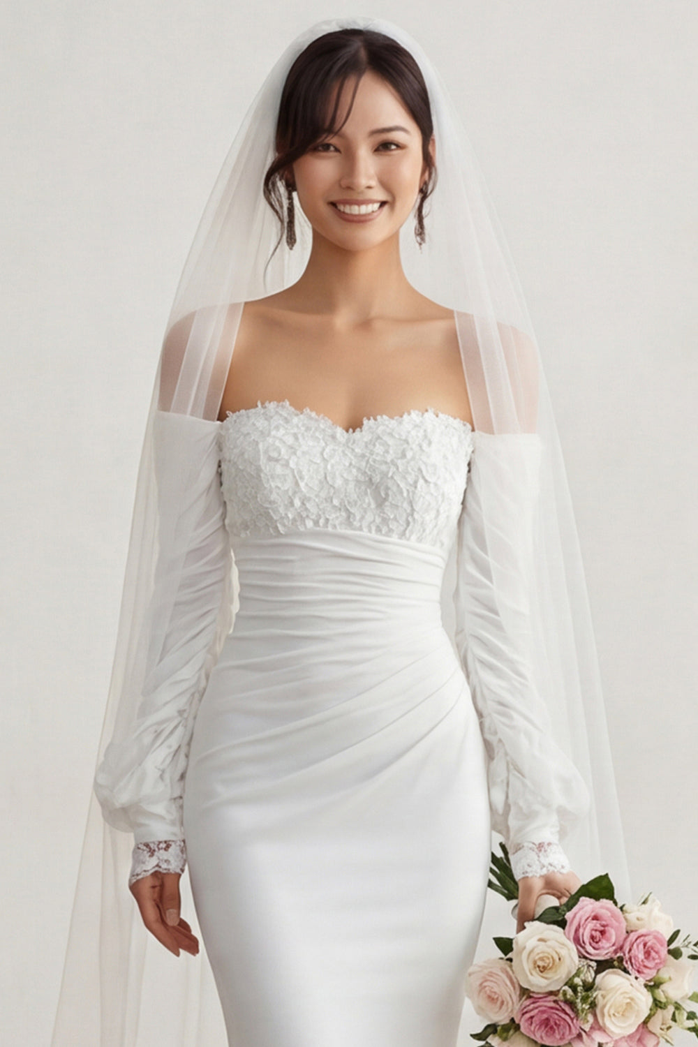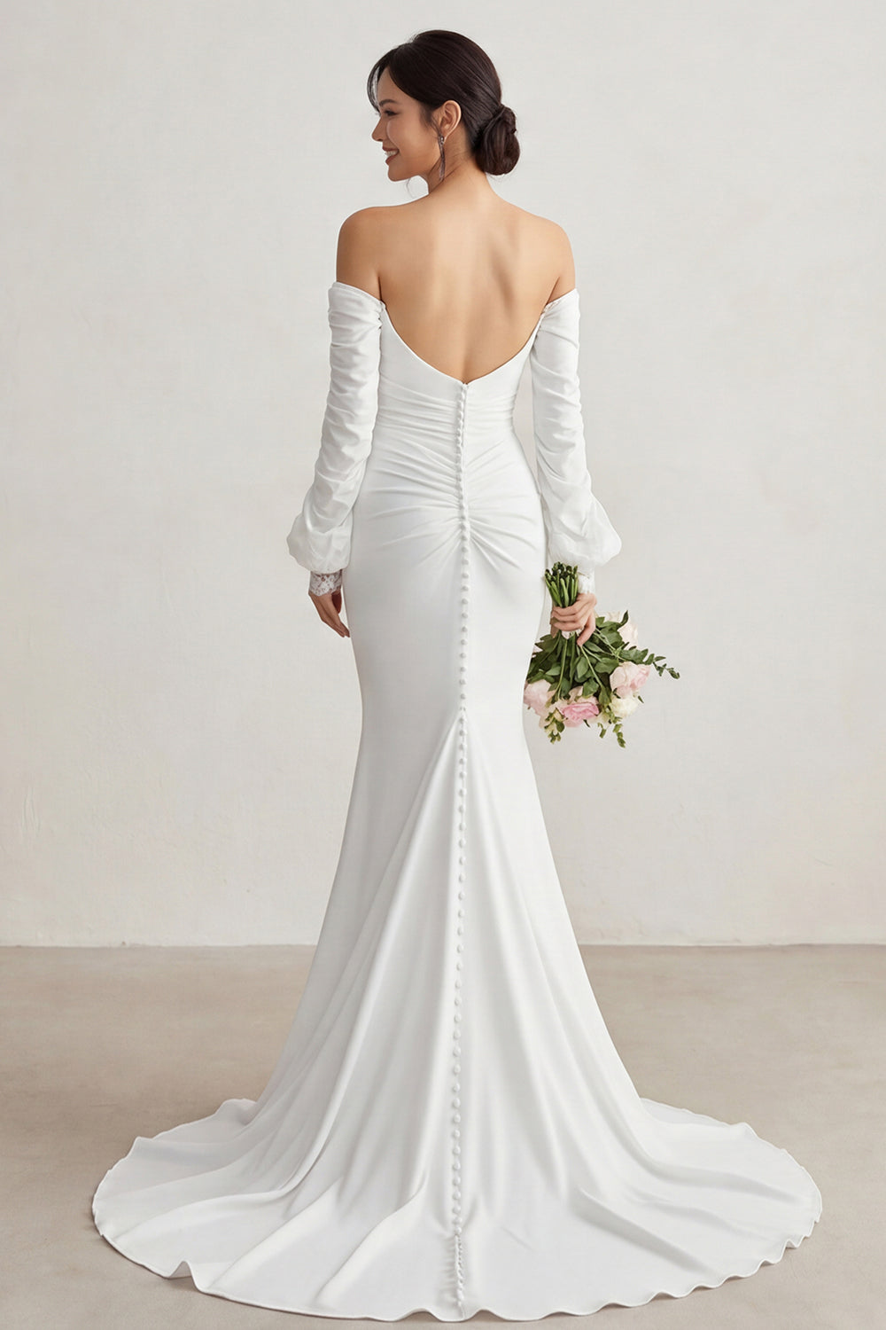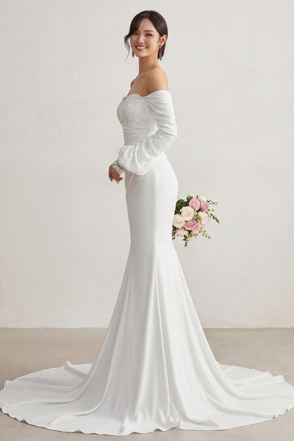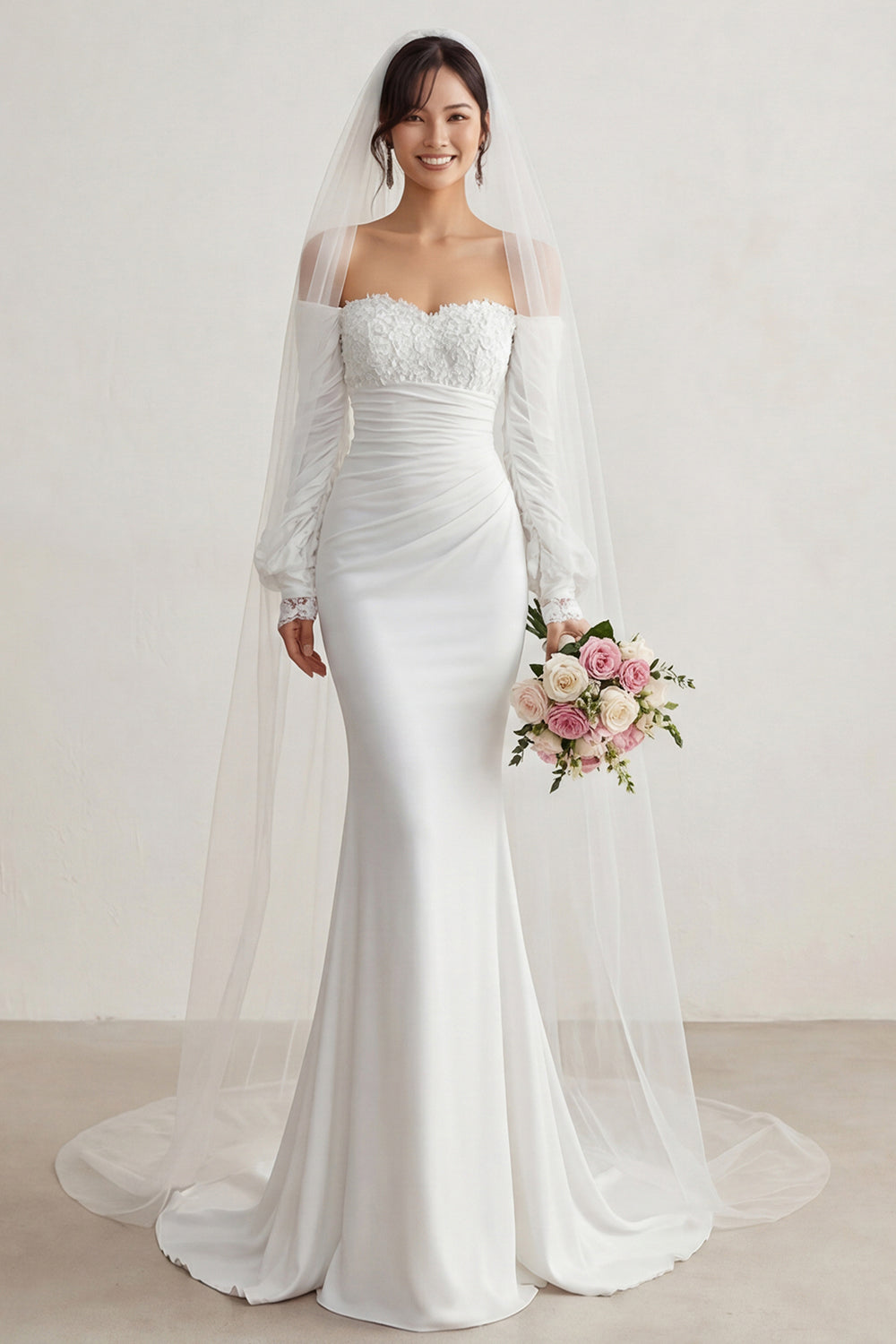 Ivoor Chiffon zeemeermin met appliqued sweep sleep boho trouwjurk met mouwen