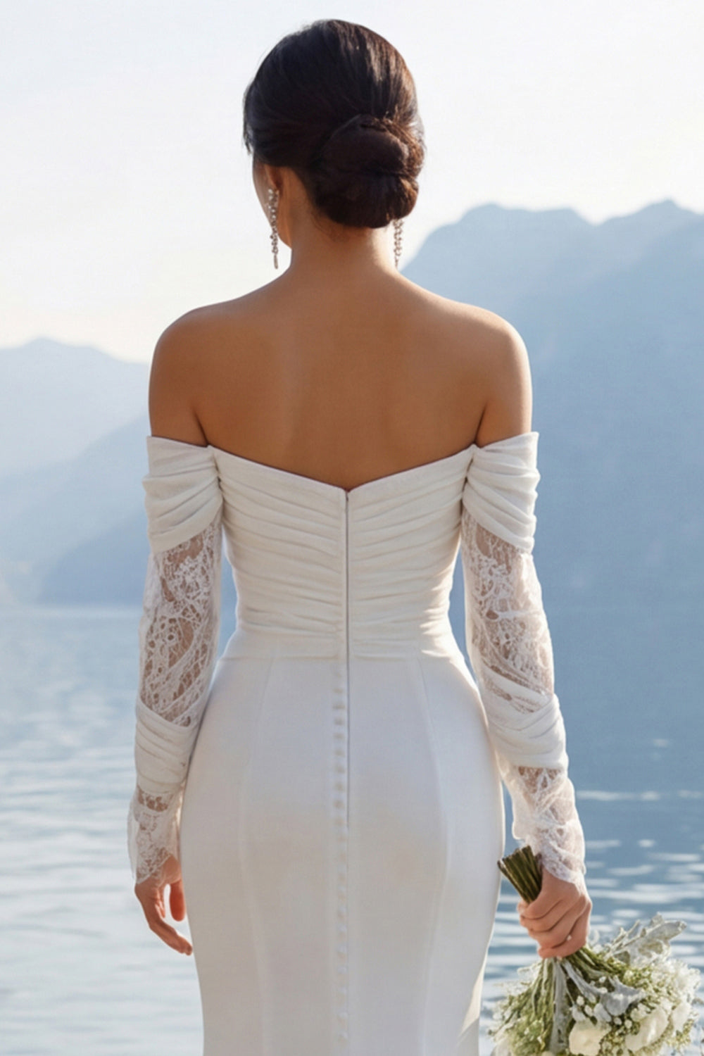 Ivoor Meermin Kant Sweetheart Chiffon Lange trouwjurk