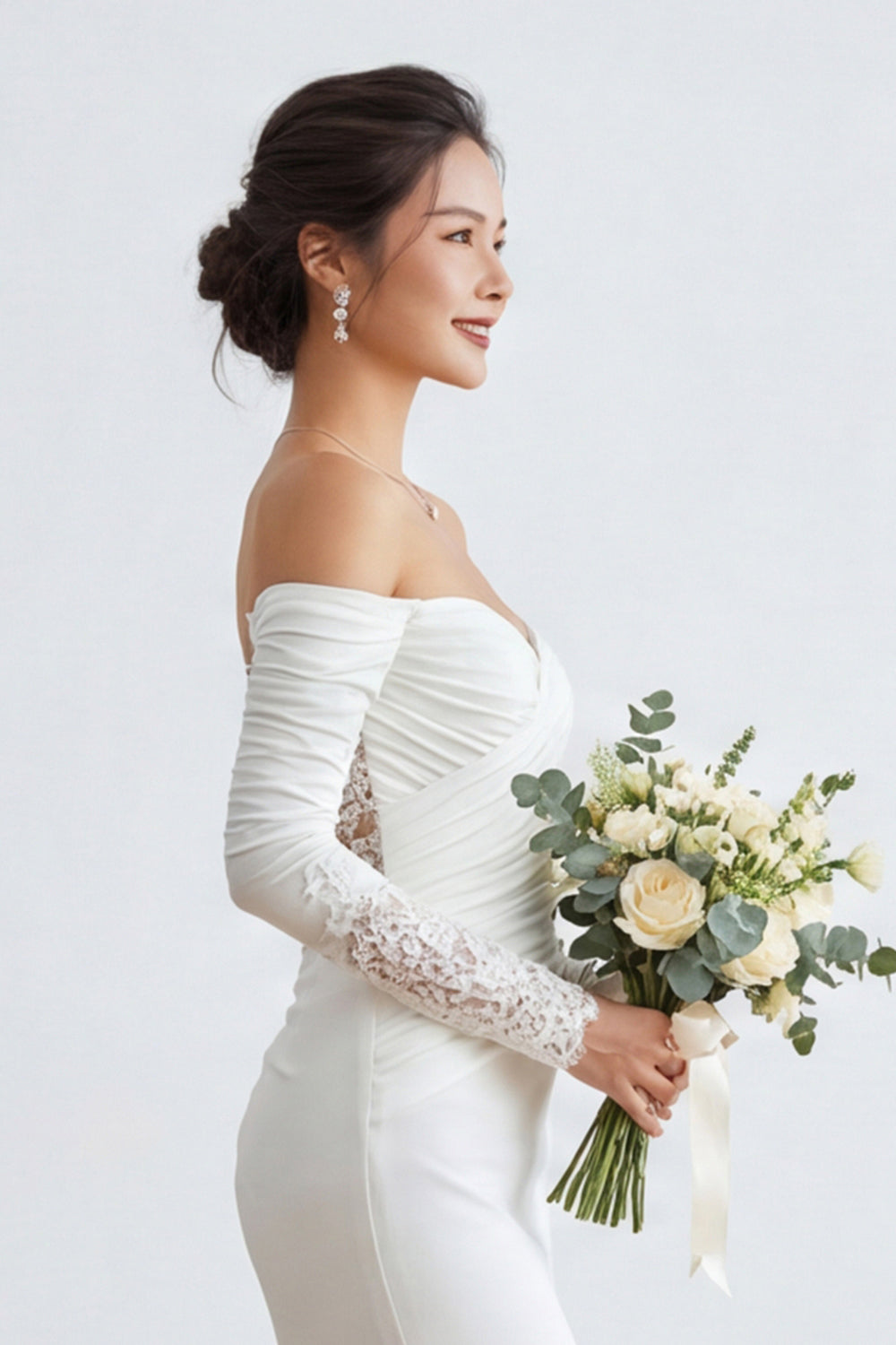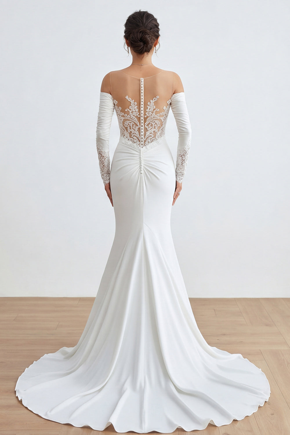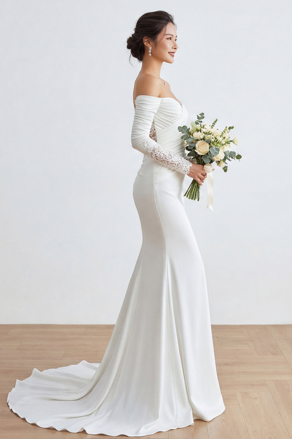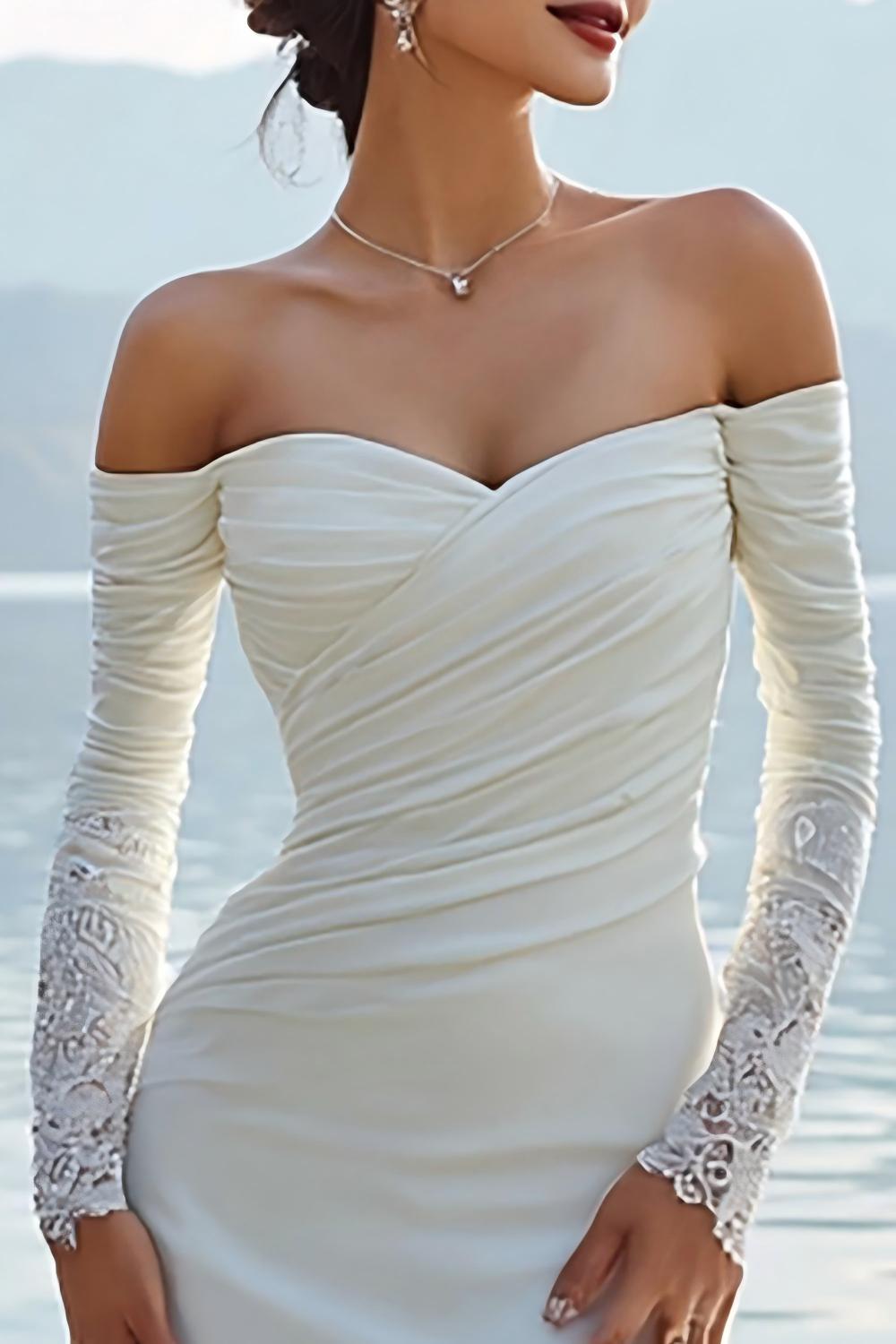 Ivoor Sweetheart Zeemeermin Lange Trouwjurk met gerimpelde Trouwjurk met applicaties