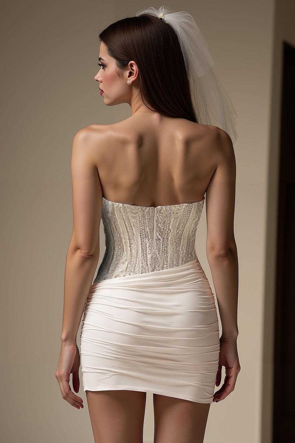 Ivory Sweetheart Bodycon geplooide korte trouwjurk
