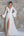 Glinsterende ivoorkleurige Kralkralenjurk met lange mouwen en split
