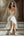 Glinsterende witte kralenversierde vierkante bloemen Maxi Boho trouwjurk