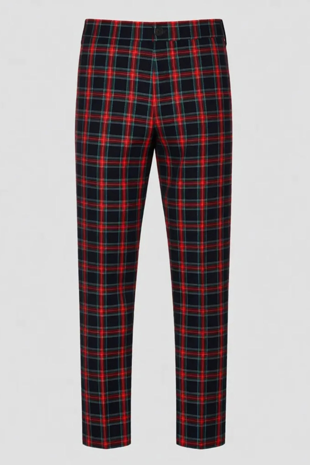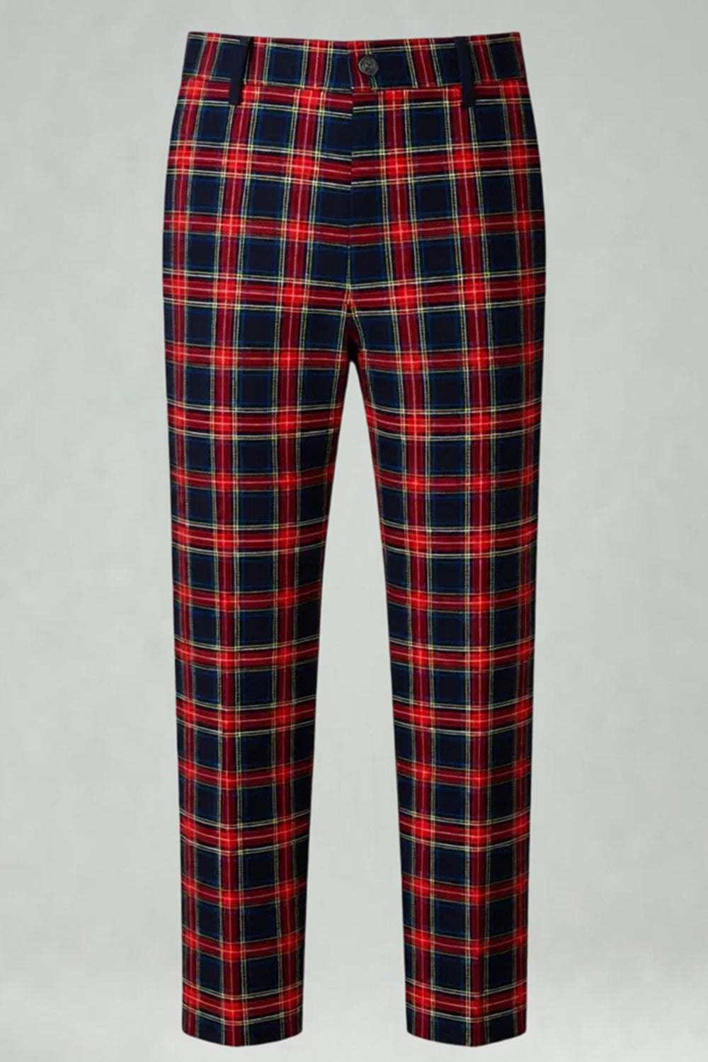 Zwart Rood Grid Peak Revers Double Breasted 2-delige heren galapakken