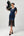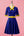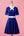 casual marine blauwe patchwork wikkeljurk met V-hals