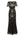 Zwarte gouden pailletten lange jaren 1920 jurk met korte mouwen