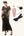 Zwart bedrukte mouwloze jaren 1950 jurk met riem
