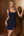 Zwart Blauw Spaghetti Bandjes Zeemeermin Geplooide Lange Bruidsmeisje Jurk met Split