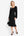 Zwarte werkjurk met lange mouwen en vierkante hals en ruches
