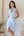 Bodycon hemelsblauwe crêpe werkjurk met V-hals
