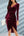 Bordeaux Bodycon V-hals Lange Mouwen Plus Size Werkjurk met Split